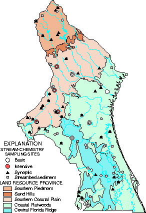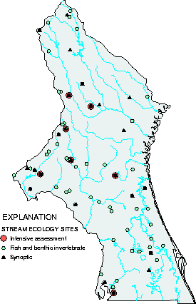 Sites at or near stream-chemistry stations and in representative streams across the study area.