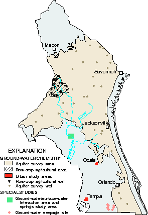 Pesticides, nutrients and tritium; to determine the effects of citrus agriculture on the quality of ground water discharging to streams.