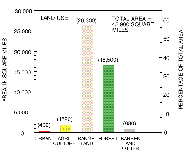 Approximately 5 percent of the land use is agricultural and urban; however, agricultural and urban land uses account for 89 percent and 8 percent, respectively, of the water used in the study area. Almost all public and domestic supplies rely on ground water, primarily from deeper aquifers. Surface-water availability typically is necessary for agriculture with the exception of a few areas where ground water is available in sufficient quantities.