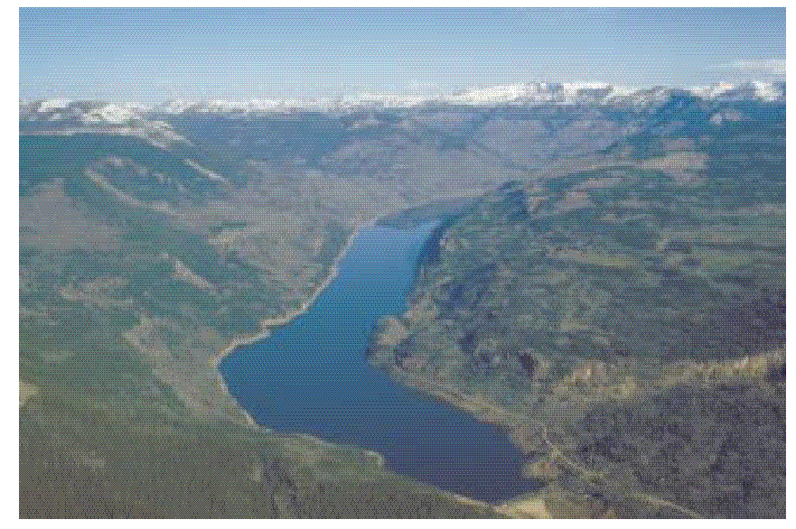Rio Grande Reservoir, in the headwaters of the Rio Grande, is used to store runoff for irrigation at surface-water diversions in the San Luis Valley (photograph by Sherman R. Ellis, U.S. Geological Survey).