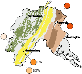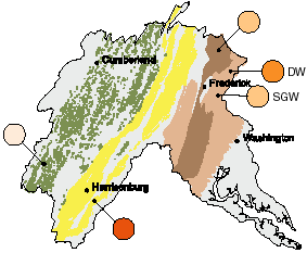 Great Valley Carbonate, ag. areas; Valley and Ridge, ag. areas; Piedmont; Triassic Lowlands
