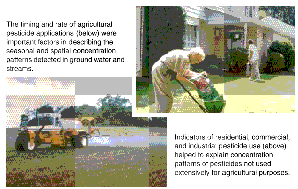 The timing and rate of agricultural pesticide applications were important factors in describing the seasonal and spatial concentration patterns detected in ground water and streams.