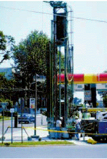 Underground storage tanks that contain gasoline and other fuels can be a source of VOCs in ground water. The drill rig shown above is used to install monitoring wells so the property owner can determine whether leakage or contamination has occurred.