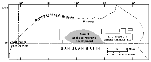 Recognition of coal-bed-methane resources in the San Juan Basin of southern Colorado (fig. 1) and the application of production technology to other parts of the Nation has slowed the decline in domestic hydrocarbon exploration and production. The early and rapid dissemination of coal-bed-methane technology and resource estimates was key to the development of this energy source that now supplies a significant part of the Nation's domestically produced natural gas. In 1988, the USGS, the Southern Ute Tribe, and the Bureau of Indian Affairs hosted the first coal-bed-methane symposium that was based on recent USGS research. From this beginning, the southern Colorado area has seen the development of an additional 800 wells that produce more than 130 billion cubic feet of gas per year, which has resulted in a significant increase in tribal revenues from methane production. In cooperation with the U.S. Forest Service and the Bureau of Land Management, the USGS recently completed an assessment of coal-bed-methane resources on Federal lands in southern Colorado.