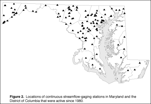 The responsibilities of the USGS include monitoring ground-water levels, streamflow, and changes in water quality; supporting efforts to reduce contamination; detecting contamination and predicting contaminant movement in water; and supplying the data needed to maintain freshwater fisheries. The USGS systematic data-collection program receives cooperative support from the MDSHA, the MGS, the Washington Suburban Sanitary Commission, the U.S. Army Corps of Engineers, and other organizations. Current and easily available data on ground-water levels, streamflow, and water quality, make the USGS systematic data-collection program an integral part of water-resources management. | ||