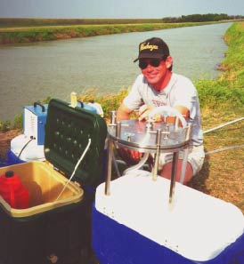 | Collecting a suspended sediment sample from the Donna Canal. |
