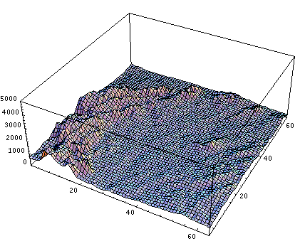 ListPlot3D[grid, PlotRange -> {0, 5000}]