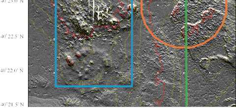 350° at an angle of 45°. The shaded-relief bathymetric