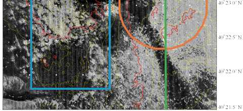 swaths (at 40° 24' N and 73° 51.5' W and at 40°' 23'