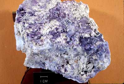 SLIDE 66 is a fracture-filling vein of fluorite-encrusted opal from the Roadside pit. The opal contains a small amount of uranium. More commonly, opal in beryllium ore occurs in the outer rims of mineralized nodules.