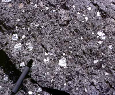 of volcanic glass, zeolite, and abundant fragments of carbonate
