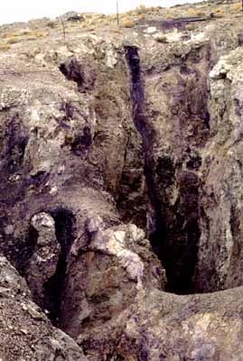 the strike of the tilted ore-bearing tuff. Deposits are mined