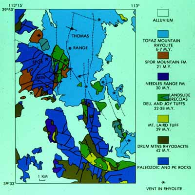 Christiansen, E. H., Bikun, J. V., Sheridan, M. F., and Burt, D. M., 1984, Geochemical evolution of topaz rhyolites from the Thomas Range and Spor Mountain, Utah: American Mineralogist, v. 69, no. 3/4, p. 223-236.