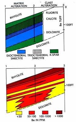 smectite). In the lowest part of the beryllium tuff, unmineralized