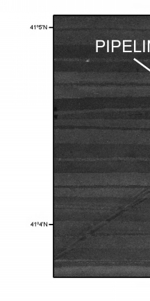 Figure 14. Detailed view of pipeline in the sidescan-sonar mosaic from the Bridgeport, Connecticut, study area. Location of this view is shown in fig 10. Figure 10. | ||