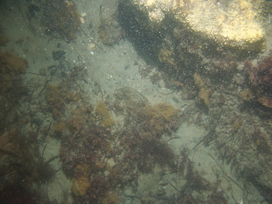 | QH38 / Boulders with intervening patches of sand and shell debris. Kelp and nondescript seaweed cover the boulders. | |||||