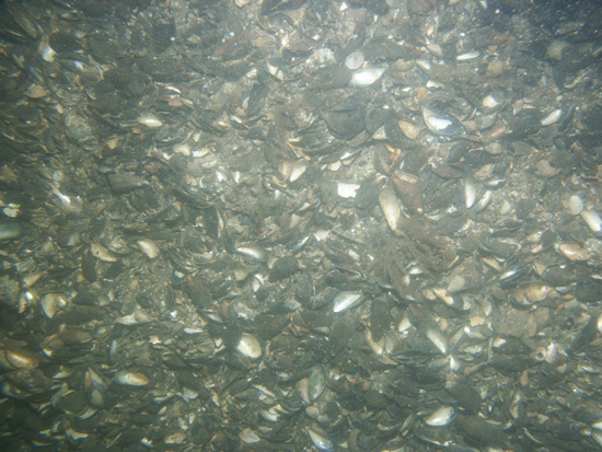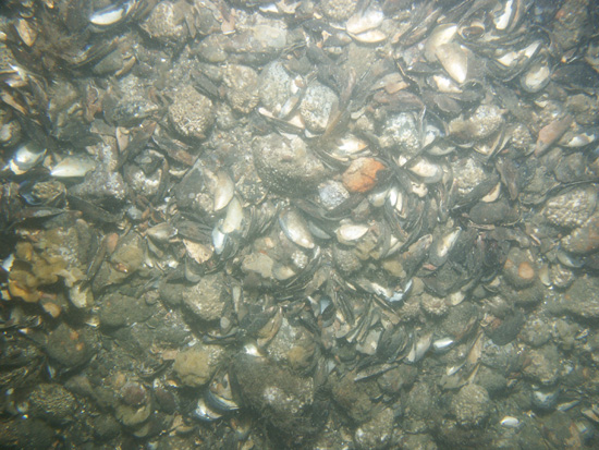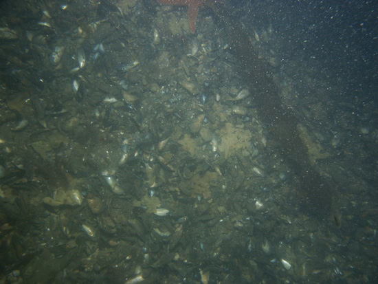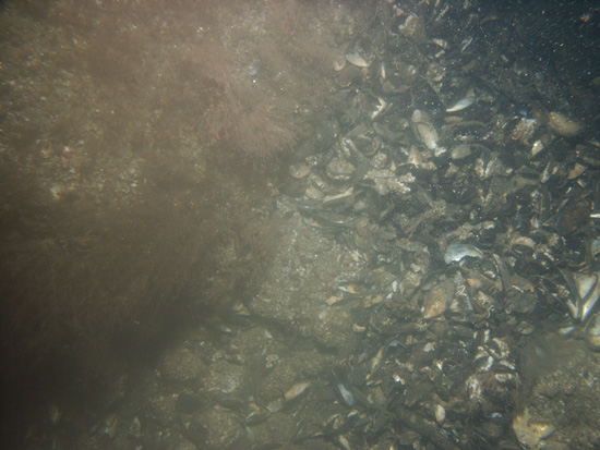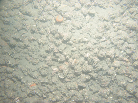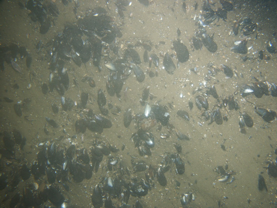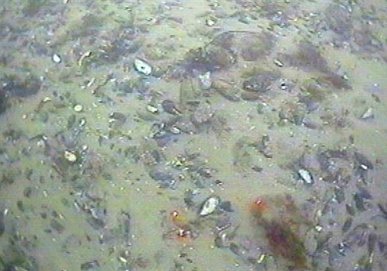 | QH28 / Rippled sand with scattered boulders and mussel shell debris. Seaweed attaches to the boulders; scallops are present. | |||||