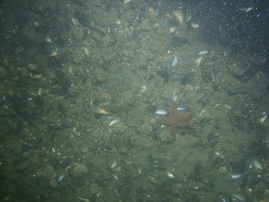 | QH35 / Sandy gravel with some shell debris, loose drifting seaweed, moon snails, and starfish. | |||||