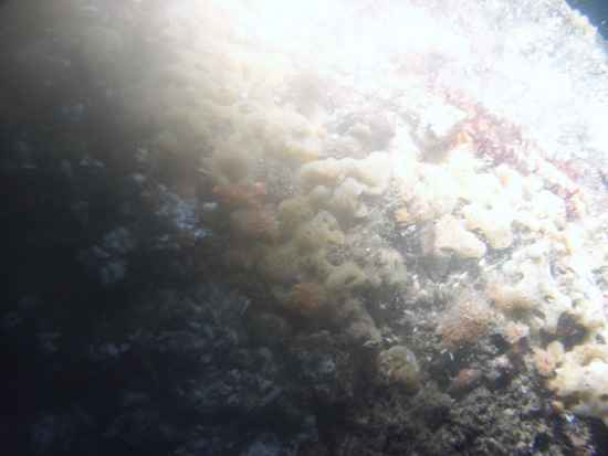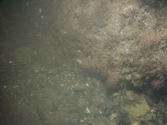 | QH40 / Boulders with intervening patches of sand and shell fragments. Sponges, starfish, barnacles, and seaweed are common on the boulders. Small fish and soft corals are present. | |||||