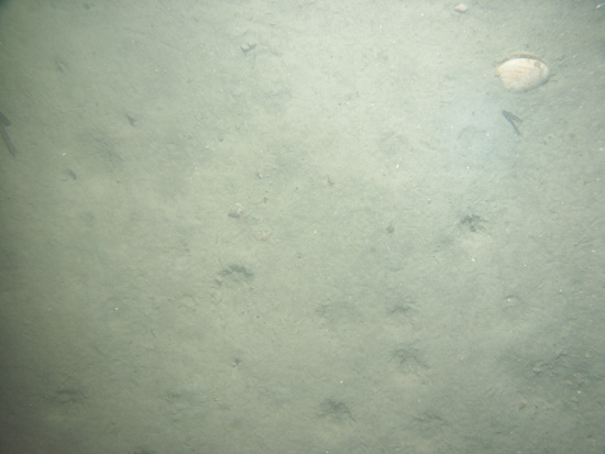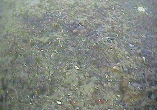 | QH42 / Current-rippled sand with fine gravel and razor clam shell debris concentrated in the troughs. Moon snails and small crabs are present; alternating bathymetric highs and lows suggest the crests and troughs of sand waves and megaripples. | |||||