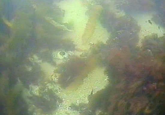 | QH24 / Flat to undulating sea floor of burrowed muddy sand. Scattered seaweed and shells and a pipe are present. PICT0220 | |||||