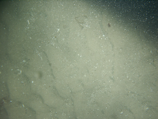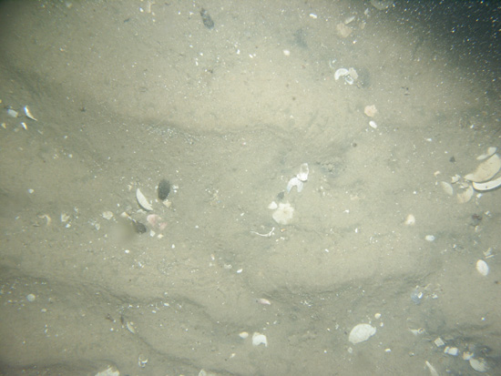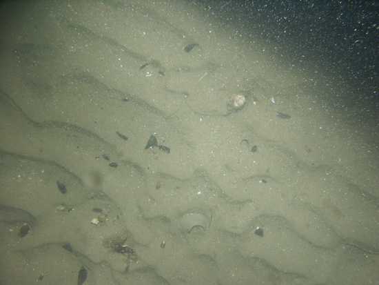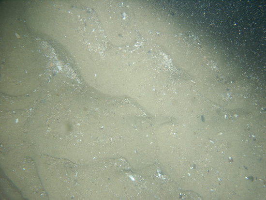 | QH44 / Current-rippled sand with abundant shell debris concentrated in the troughs. Alternating bathymetric highs and lows suggest that they are the crests and troughs of sand waves and megaripples. Moon snail casings are present. | ||||