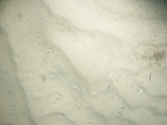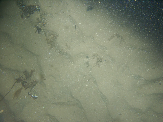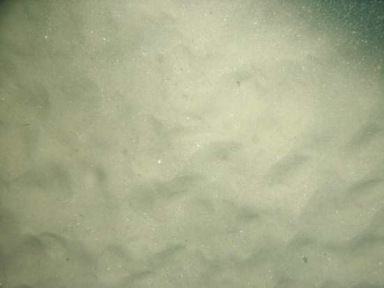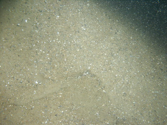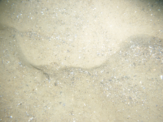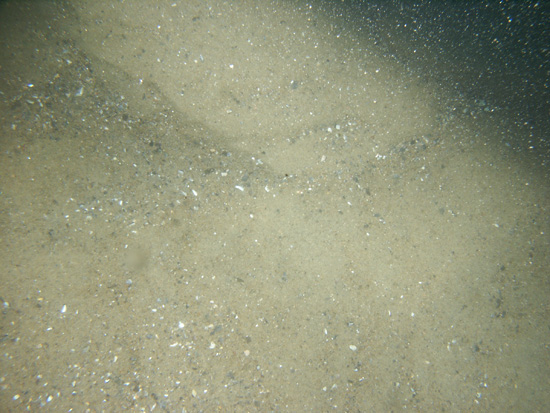 | QH46 / Current-rippled sand. Alternating bathymetric highs and lows suggest that they are the crests and troughs of sand waves and megaripples; wave crests are sandier. Shell debris (largely mussel shells) is concentrated in ripple and sand-wave troughs. Moon snail casings are present. | ||||