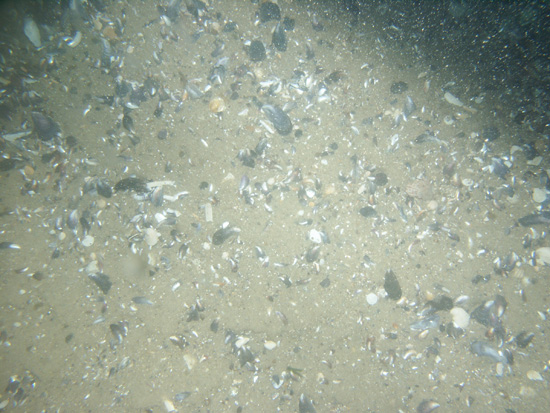 | QH43 / Rippled sand with scattered gravel. Abundant shell fragments (mostly quahog). Moon snails and their casings are present. | ||||