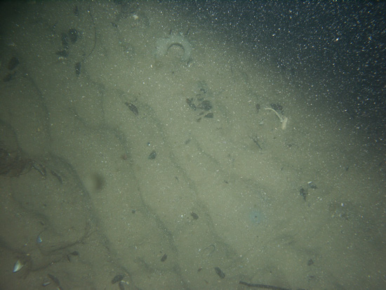 | QH47 / Current-rippled sand with patchy loose organics and shell debris concentrated in the bedform troughs. Skate, seaweed (sea lettuce), sea urchins, and moon snail casings are present. | ||||