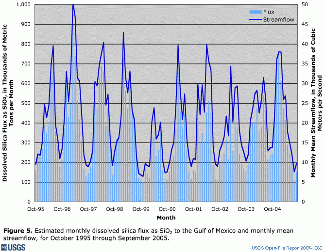 silica (figure 5), along with concurrent annual streamflow delivered to the Gulf of Mexico
