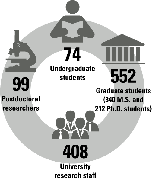 The CRU program maximizes taxpayer investment, turning every appropriated Federal dollar into three dollars by CRU scientists, who leverage additional funding and support for the CRU program. The CRU program budget in FY 2024 was $29.3 million dollars in appropriated Federal funding that primarily supported the salary of Unit scientists. Unit scientists were then able to secure approximately $48 million in research funds from cooperators and stakeholders. Leveraged funding is administered through host university’s budgetary processes to support each Unit’s research program, to provide training to students, and to provide assistance to cooperators and stakeholders. On average, the leveraged funding streams from CRU scientists generate support for as many as 31 non-Federal positions at each host university per year, including graduate students, postdoctoral researchers, and research technicians. Leveraged funding at host universities supports over 1,100 jobs, providing real economic benefits to local communities. Cooperating universities also provided an additional $22 million of in-kind support through facilities, student tuition, and reduced overhead.
