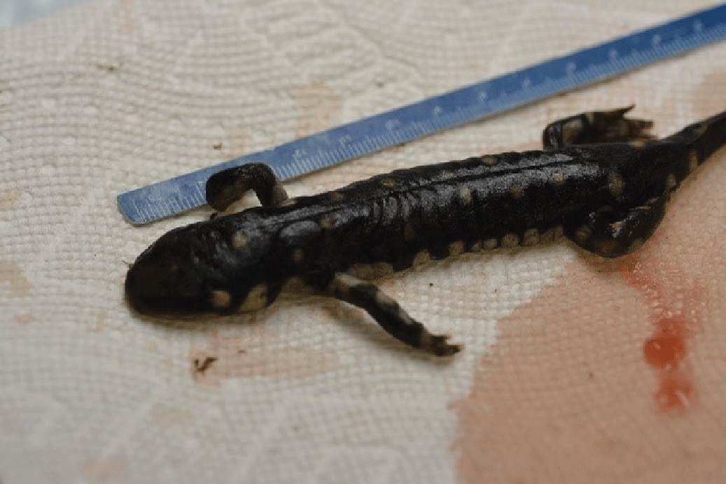 Photograph showing an example of an amphibian carcass in good postmortem condition. Photograph provided by National Wildlife Health Center staff.