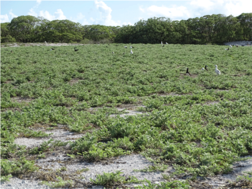 Open Heliotropium foertherianum woodland on Peale Islet. (Photograph by J. Jacobi, U.S. Geological Survey, 2019).