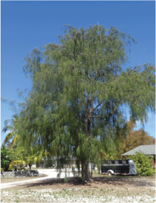 Large Casuarina equisetifolia (ironwood) tree growing in the open near the residential area on Wake Islet. (Photograph by J. Jacobi, U.S. Geological Survey, 2019).