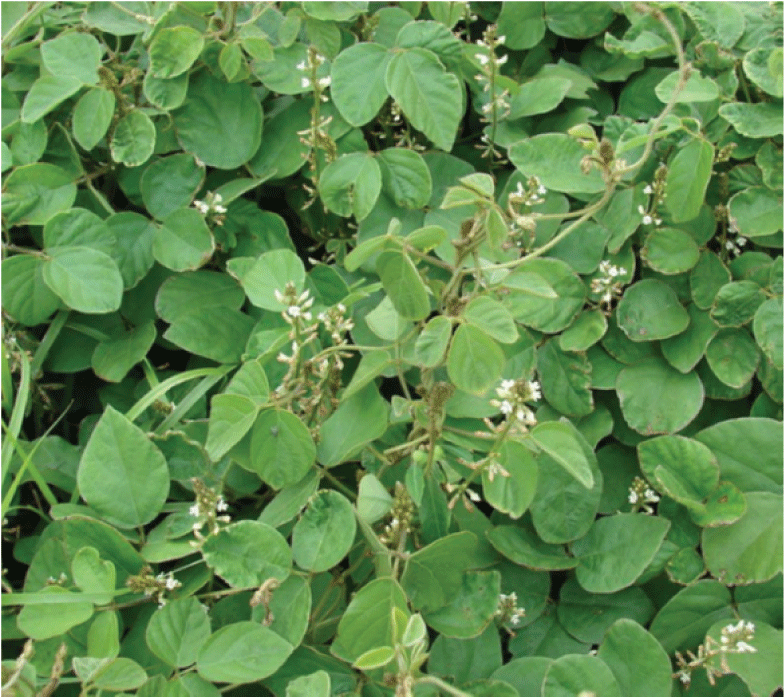 The aggressive, invasive vine, Neonotonia wightii, has the ability to smother the vegetation in lowland habitats, as seen in many areas in Hawai‘i. (Photograph by Forest and Kim Starr, Starr Environmental).
