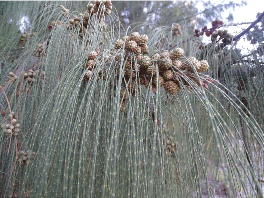 Closeup of foliage and cones of Casuarina equisetifolia. (Photograph by J. Jacobi, U.S. Geological Survey, 2019).