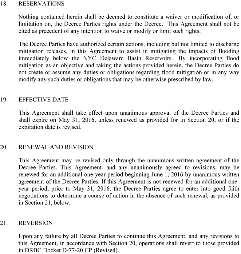 Full text of the Agreement consented to by the following Decree Parties: the State of Delaware, the State of New Jersey, the State of New York, the Commonwealth of Pennsylvania, and the City of New York.
