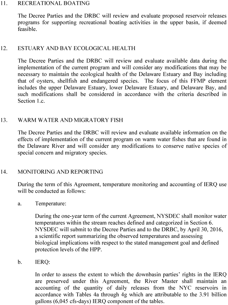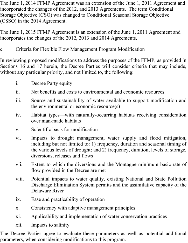 Full text of the agreement for a temporary modification to the 2014 Flexible Flow Management Program consented to by the following Decree Parties: the State of Delaware, the State of New Jersey, the State of New York, the Commonwealth of Pennsylvania, and the City of New York.