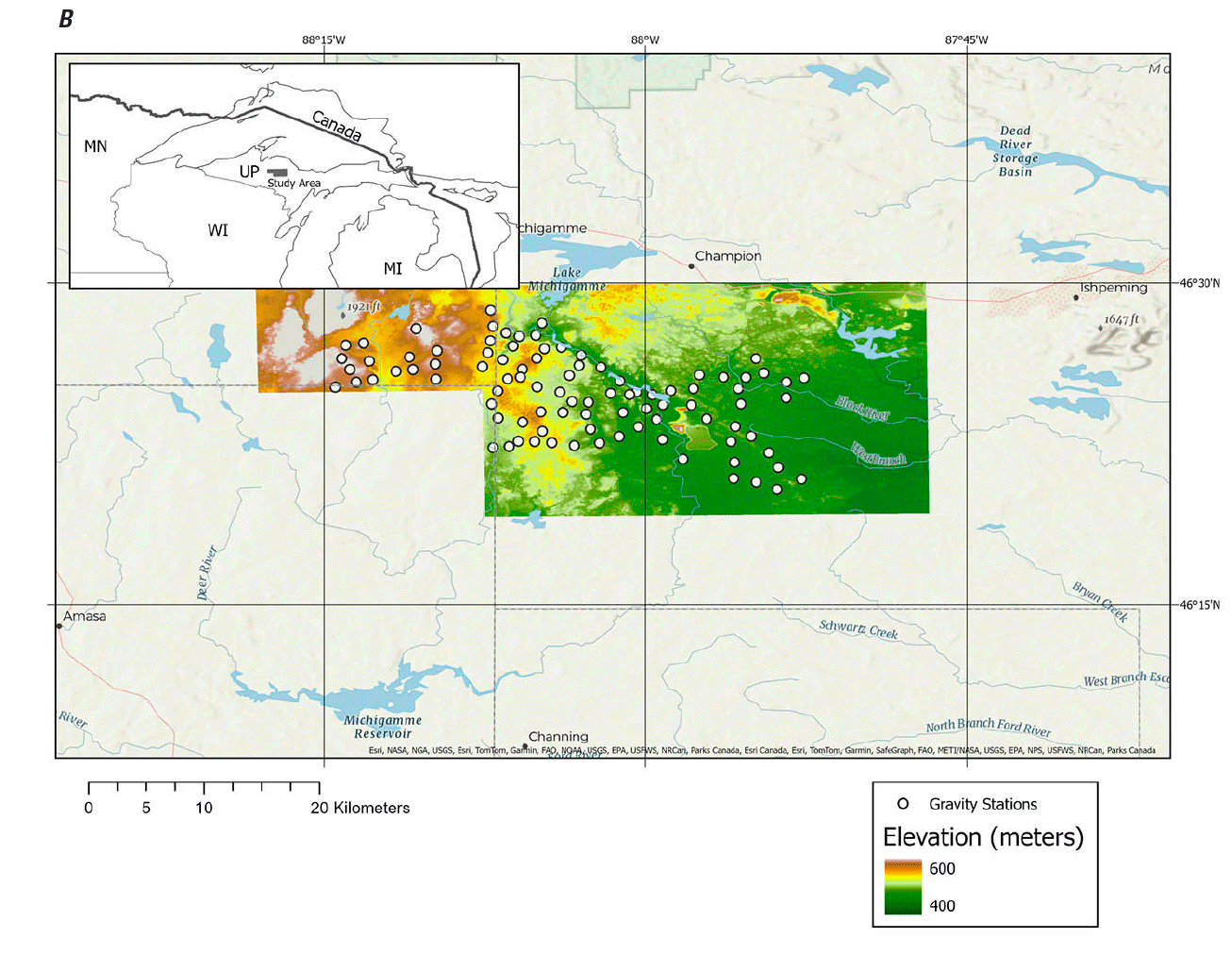 Drenth, B.J., Reitman, J.J., and Brown, P.J., 2024, Principal facts of regional gravity in the central Upper Peninsula, Michigan, 2022–2023: U.S. Geological Survey data release, accessed November 20, 2024, at https://doi.org/10.5066/P9L6KML9.