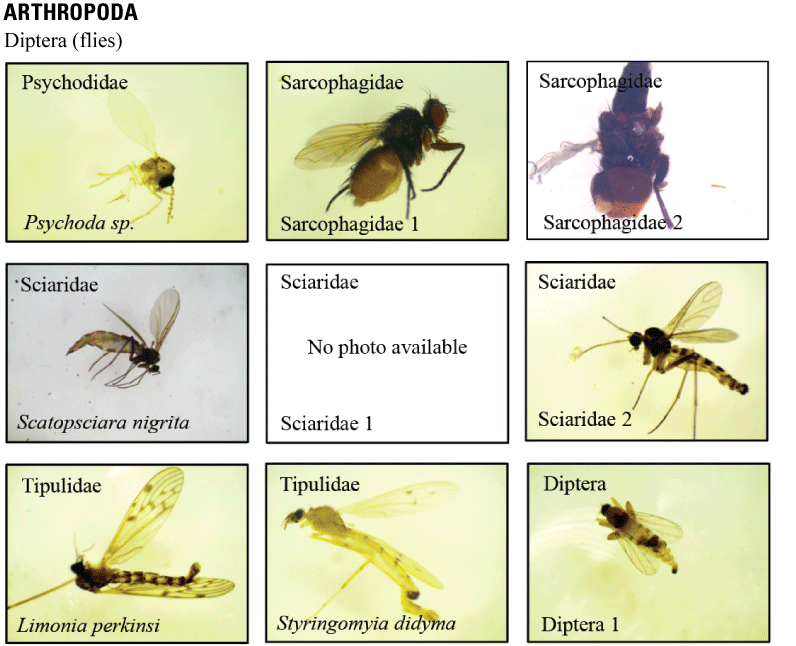 Yellow pan traps consisted of an approximately 23-cm-diameter yellow plastic plate filled with a mixture of 200 milliliters (mL) of water and a 2-mL-drop of dish soap secured to warehouse floors with duct tape. Yellow is a common attractant for flying insects, and other arthropods may be attracted to water or may incidentally fall in. The soap acts as a surfactant so that trapped arthropods sink and can subsequently be collected. Specimens were collected from yellow pan traps by carefully pouring the trap solution through a funnel lined with a fine mesh bag, then inverting the bag and rinsing captured animals into a 50 mL vial using a Nalgene wash bottle containing 70-percent ethanol, preserving them for later identification.