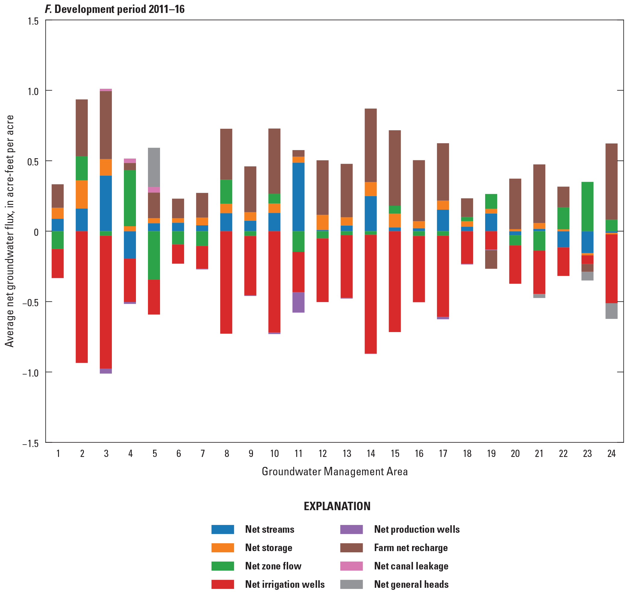 Conceptual flux estimates for pre-1940 and recent development (2011–16) periods for the groundwater subsystem fluxes of outflows to irrigation wells for the Central Platte Integrated Hydrologic Model.[AET, actual evapotranspiration]