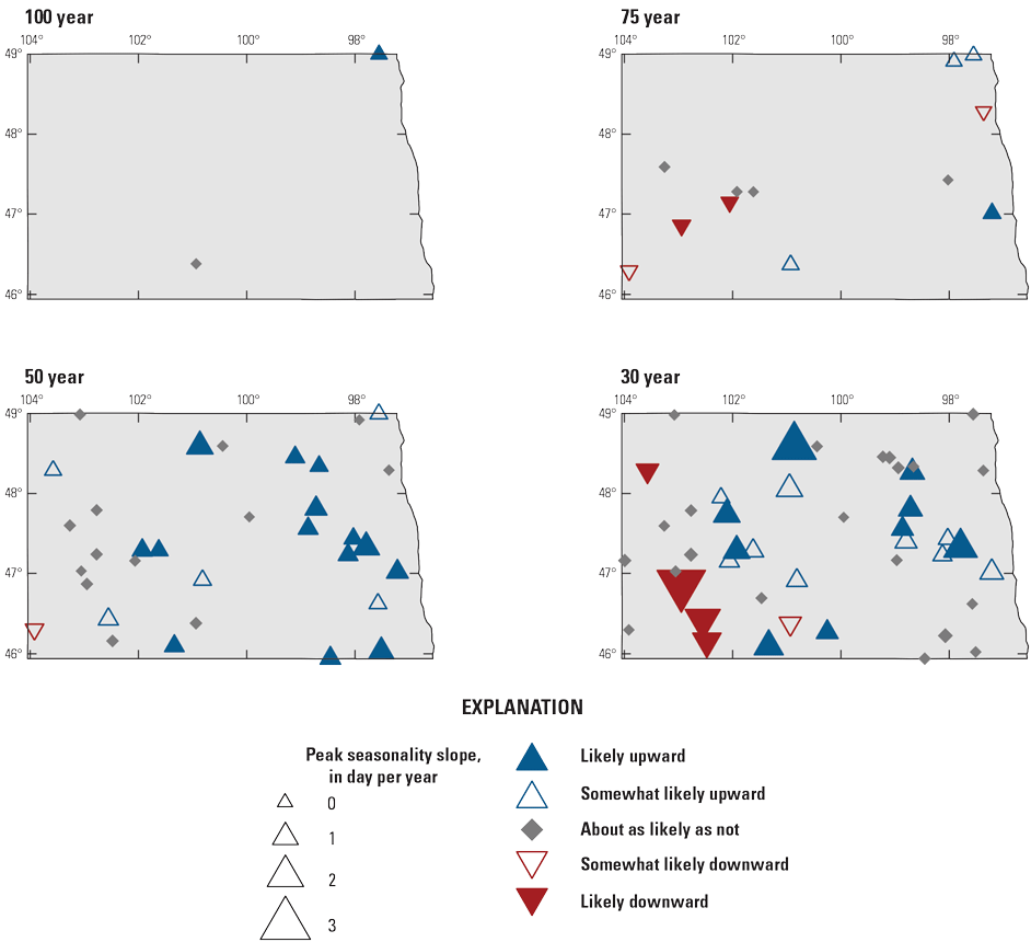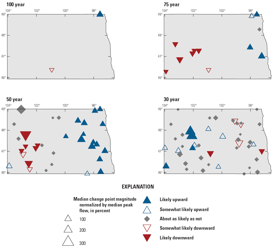 Ryberg, K.R., and Williams-Sether, T., 2025, Peak streamflow trends in North Dakota and their relation to changes in climate, water years 1921–2020, chap. H of Ryberg, K.R., comp., Peak streamflow trends and their relation to changes in climate in Illinois, Iowa, Michigan, Minnesota, Missouri, Montana, North Dakota, South Dakota, and Wisconsin: U.S. Geological Survey Scientific Investigations Report 2023–5064, 80 p., https://doi.org/10.3133/sir20235064H.