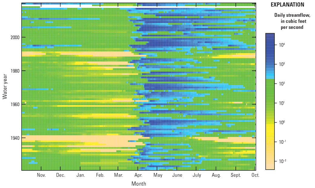 Other documented changes in streamflow characteristics within the study area in the last 30 years indicate spatial and temporal differences in the timing, magnitude, and frequency of streamflows. For example, a general tendency is toward earlier snowmelt-dominated peak flows for much of the northern part of the study area (Ryberg and others, 2016a). Other studies have noted a more gradual tendency toward decreases in annual streamflow in Montana and Wyoming (Norton and others, 2014) and increases in monthly, seasonal, and annual streamflow in eastern North and South Dakota (Norton and others, 2014; Hoogestraat and Stamm, 2015). McCabe and Wolock (2002) determined a change point in minimum and median daily streamflow at selected U.S. streamgages with substantial increases beginning in 1971 at sites primarily east of lat 100° W.