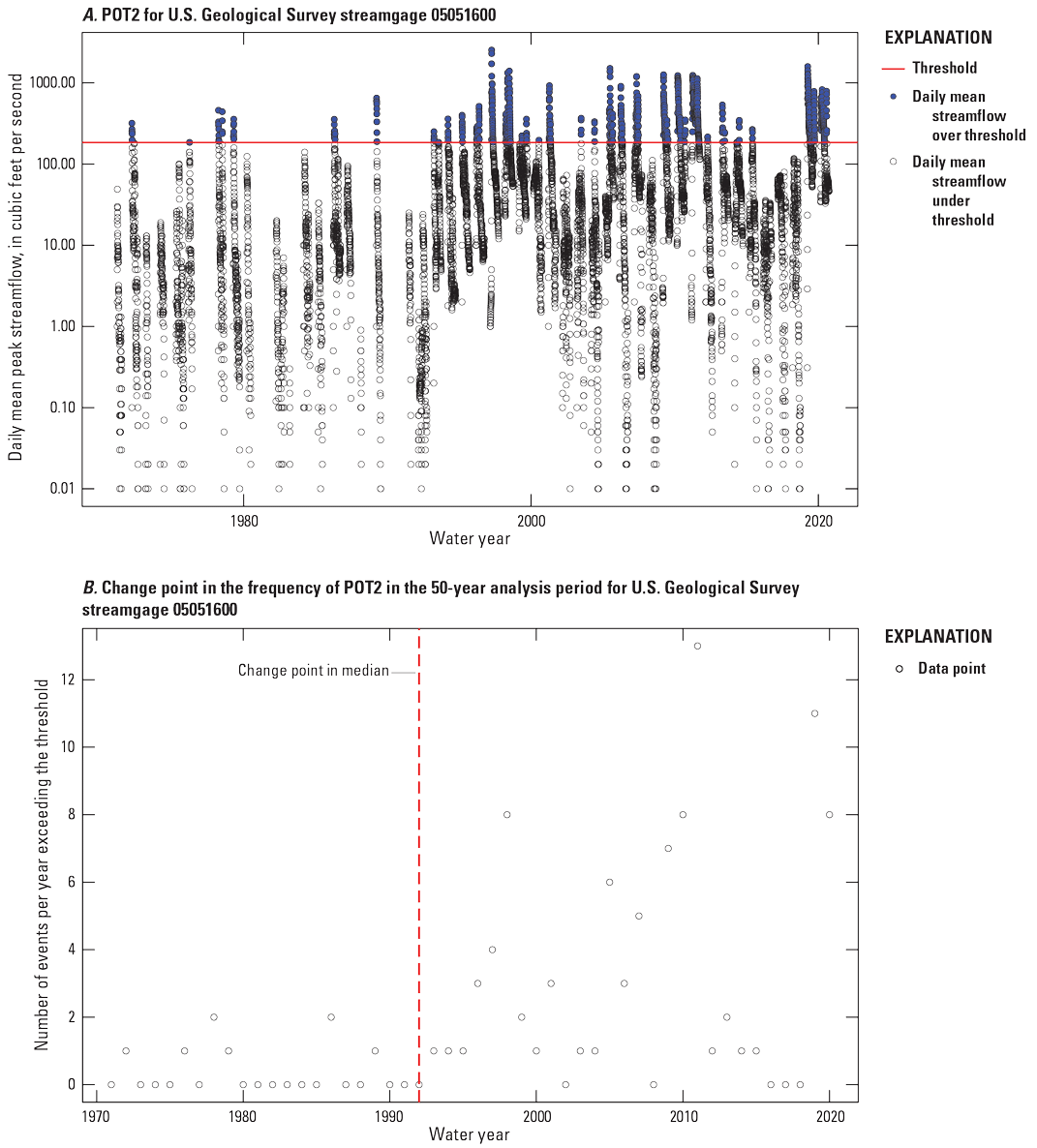 York, B.C., Ryberg, K.R., Asquith, W.H., Chase, K.J., Dickinson, J.E., Dudley, R.W., Harden, T.M., Hodgkins, G.A., Holtschlag, D.J., Humberson, D.G., Konrad, C.P., Levin, S.B., Restivo, D.E., Sando, R., Sando, S.K., Swain, E.D., Tillery, A.C., and Totten, A.R., 2022, Attributions for nonstationary peak streamflow records across the conterminous United States, 1941–2015 and 1966–2015: U.S. Geological Survey data release, accessed February 7, 2022, at https://doi.org/10.5066/P9FOUVWG.