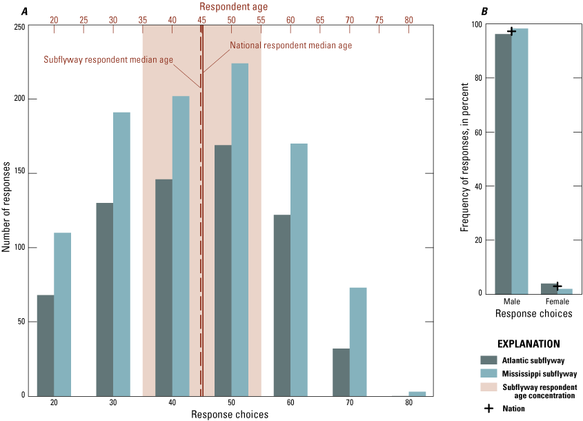 Any U.S. resident 18 years or older and who had participated in waterfowl hunting in 2015 was contacted for the original survey effort (Patton, 2018). Contact information was collected from the 2015 Migratory Bird Harvest Information Program. A total of 138,948 respondents were selected in 49 States. The 4 flyways were divided into 3 subflyways for a total of 12 sampling regions in the United States. The survey was designed with the intended purpose of achieving a minimum of 400 completed surveys in each of the 12 subflyway regions. Some States (Arkansas, Florida, and Missouri) requested oversampling, which resulted in larger sample sizes. Other States, such as Alabama, Georgia, Louisiana, and Mississippi, did not request oversampling and had particularly low response rates. A State-specific breakdown of selected survey results in the Southeast region (number of responses, demographics, involvement, donations, trust, satisfaction, and barriers) is provided in appendix 1 (tables 1.1–1.6).