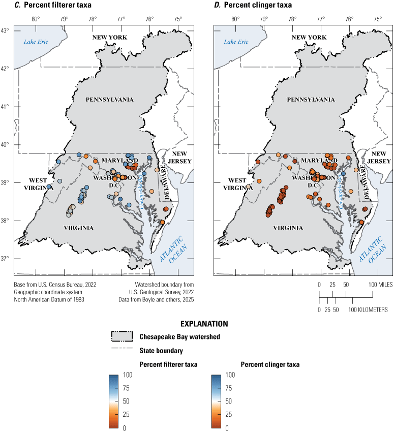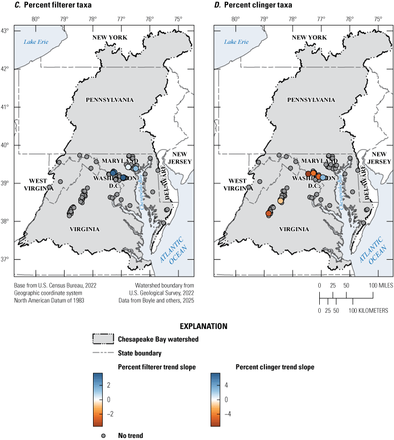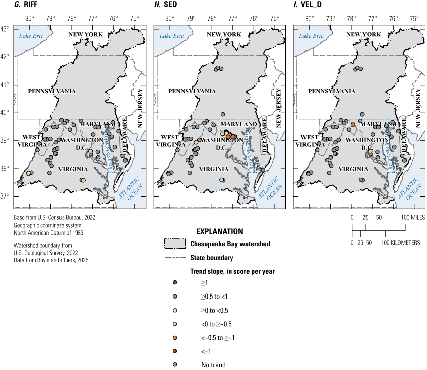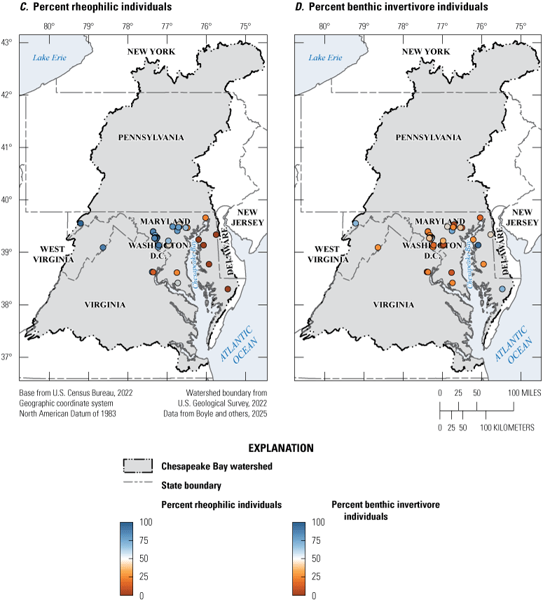 Boyle, L.J., Austin, S.H., Cashman, M.J., Clifton, Z.J., Clune, J.W., Colgin, J.E., Elliott, K.E.M., Fanelli, R.M., Foss, E.P., Hitt, N.P., Hittle, E.A., Howe, C.M., Majcher, E.H., Maloney, K.O., Mason, C.A., Metes, M.J., Moyer, D.L., Needham, T.P., Rogers, K.M., Thompson, J.J., Yang, G., and Zimmerman, T.M., 2025, Tracking status and trends in seven key indicators of river and stream condition in the Chesapeake Bay watershed: U.S. Geological Survey Scientific Investigations Report 2025–5072, 104 p., https://doi.org/10.3133/sir20255072.