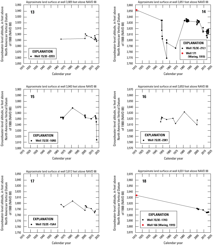 Groundwater-level measurements, reported as depth to water in ft bls, were collected by the USGS using calibrated steel or electric tapes in accordance with published USGS technical procedures (Cunningham and Schalk, 2011). All groundwater-level data were quality checked and entered into the USGS National Water Information System (NWIS; see the “Accessing Data” section; U.S. Geological Survey, 2021).