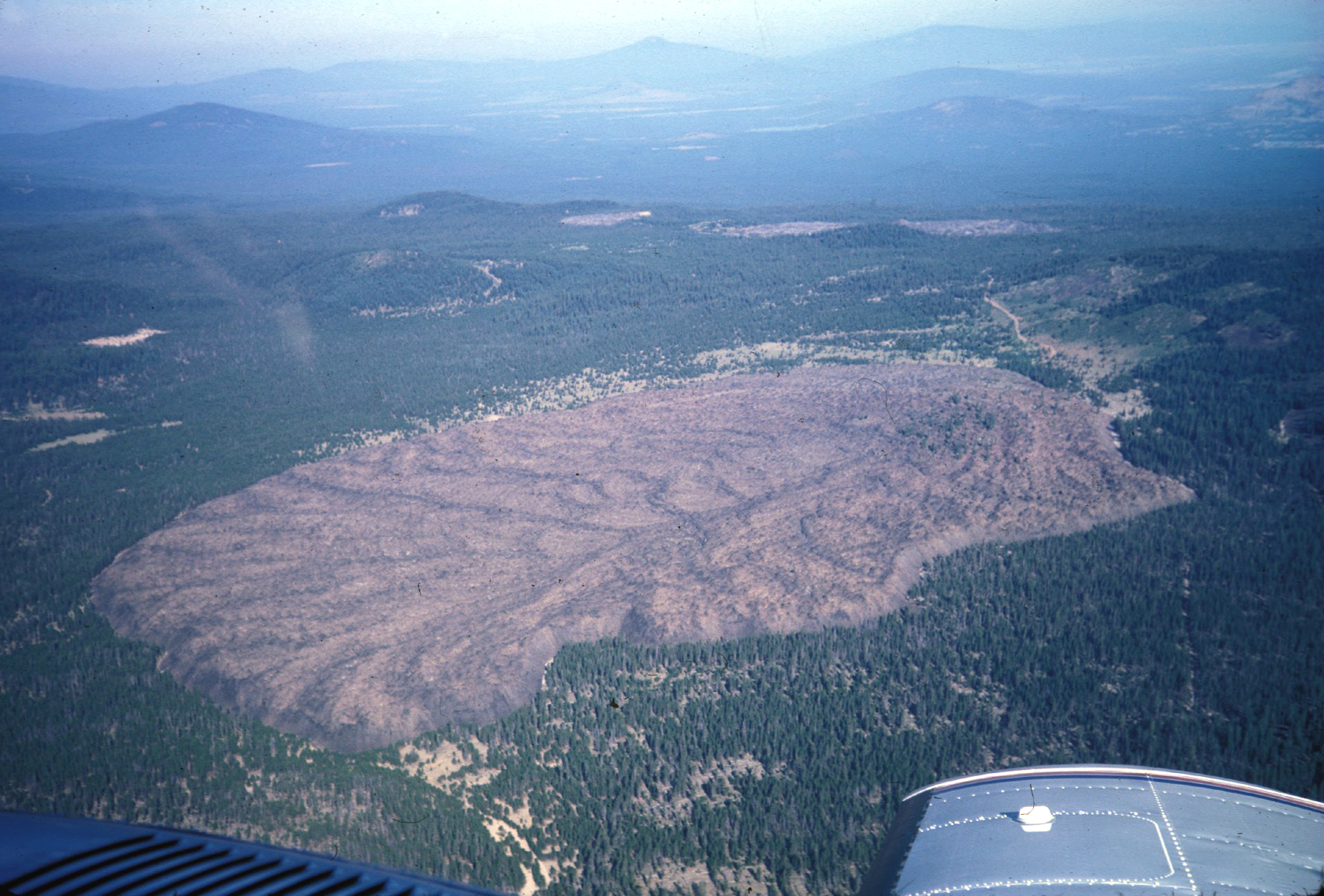 14. Aerial view looking northwest across the 5,200-year-old Medicine Lake Glass Flow (map unit dm).