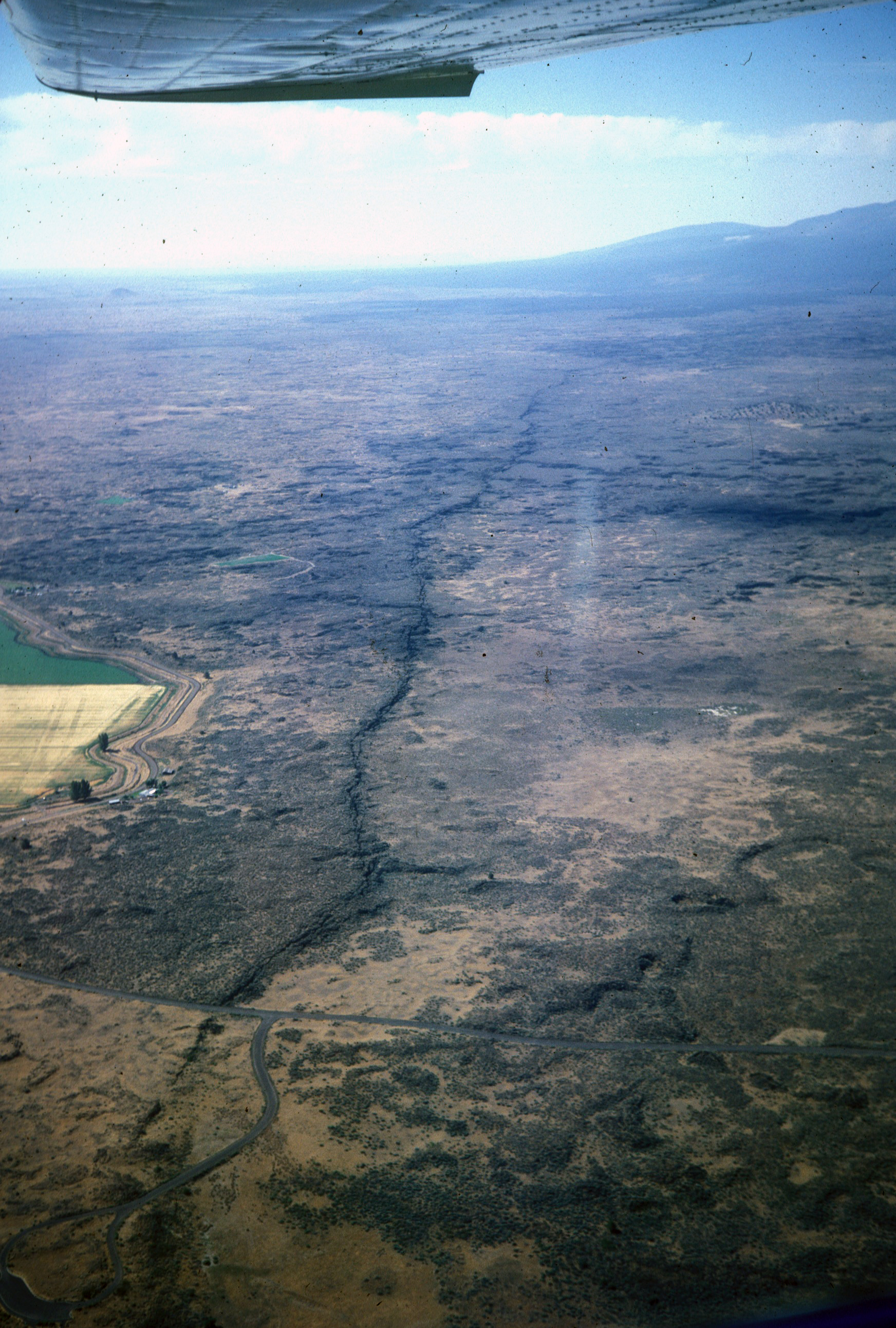 ![]() Big Crack 17. Big Crack has an overall north-south trend and is located in the northeastern part of Lava Beds National Monument. The fault has no apparent vertical offset but, instead, is simply a result of the regional east-west extensional tectonic environment. View is to south. Photograph by Julie M. Donnelly-Nolan. |